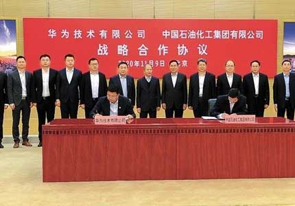 11月9日,中国石化与华为技术有限公司战略合作协议签约仪式在京举行。